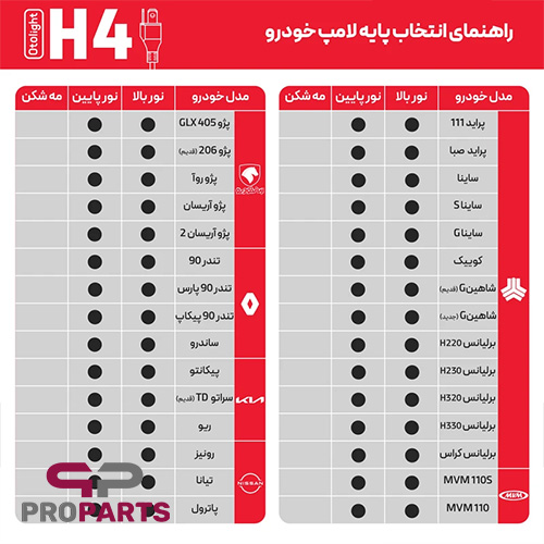 • مناسب برای کلیه خودروهایی که پایه H4 دارند.